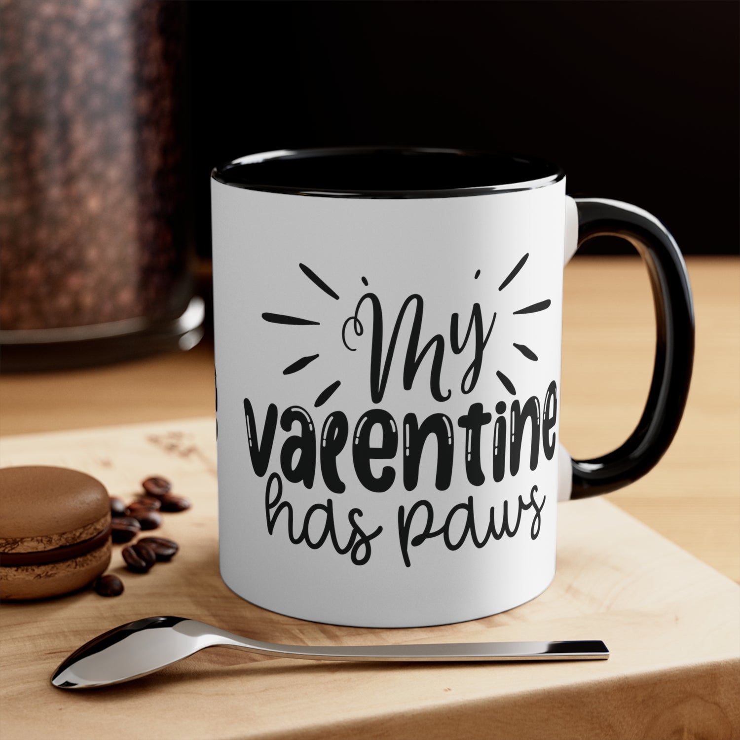 My Valentine Has Paws Accent Coffee Mug, 11oz