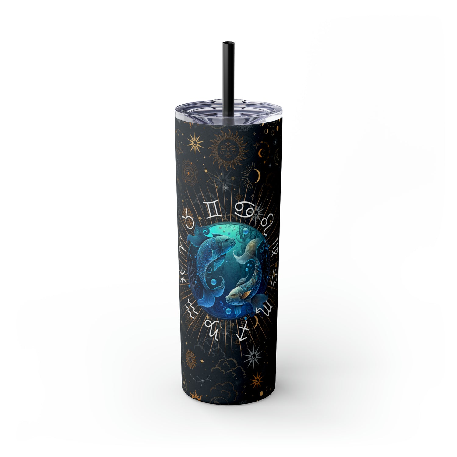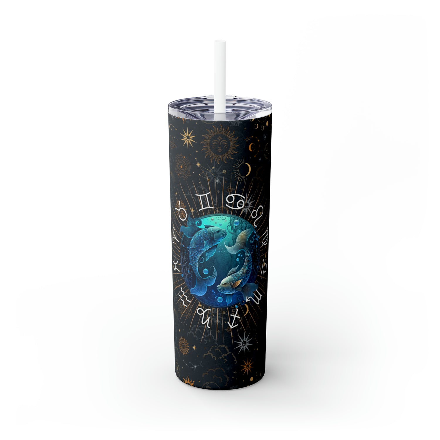 Pisces Zodiac Skinny Tumbler with Straw Astrology Insulated Mug Bridesmaids Gift Bachelorette Party Favor Birthday Gift