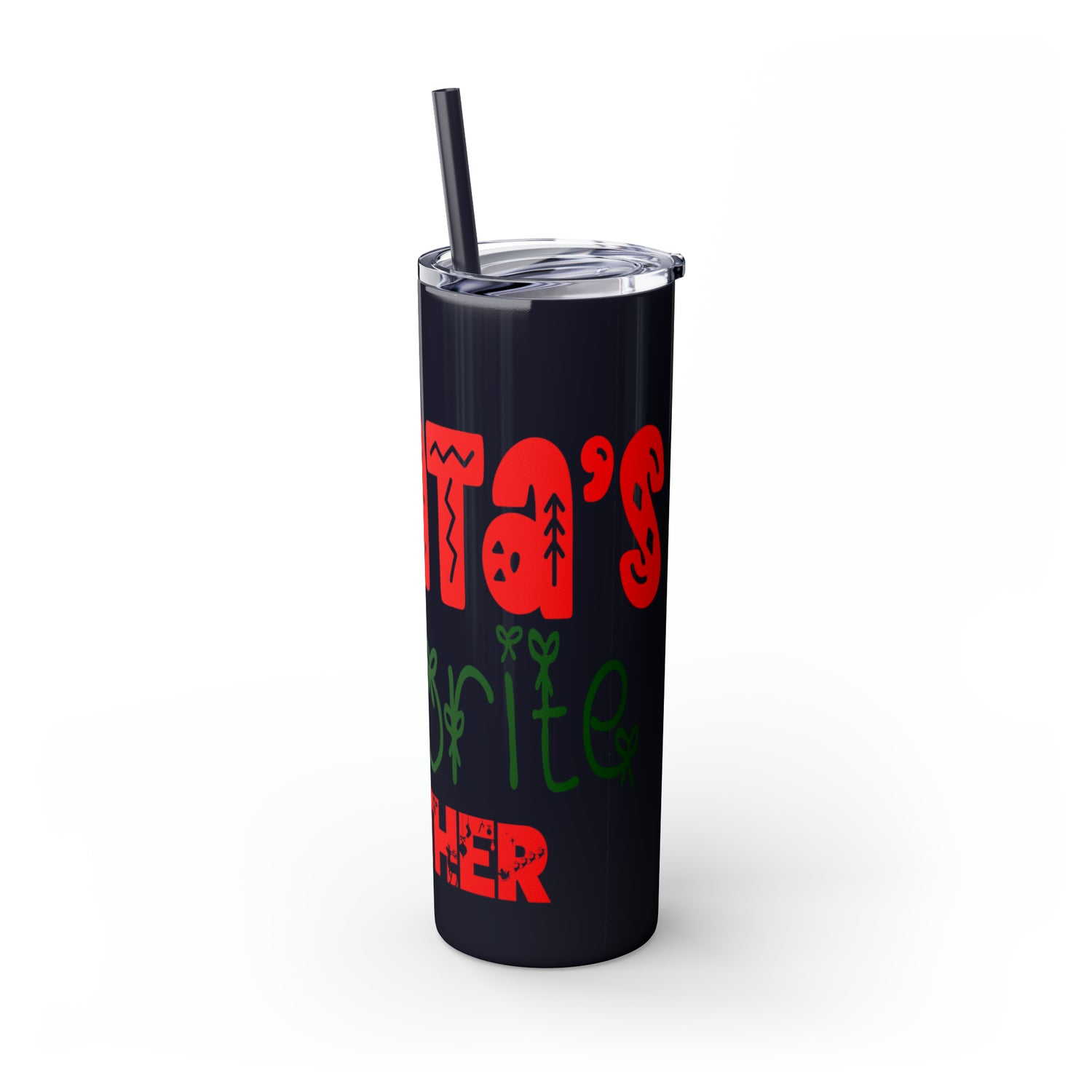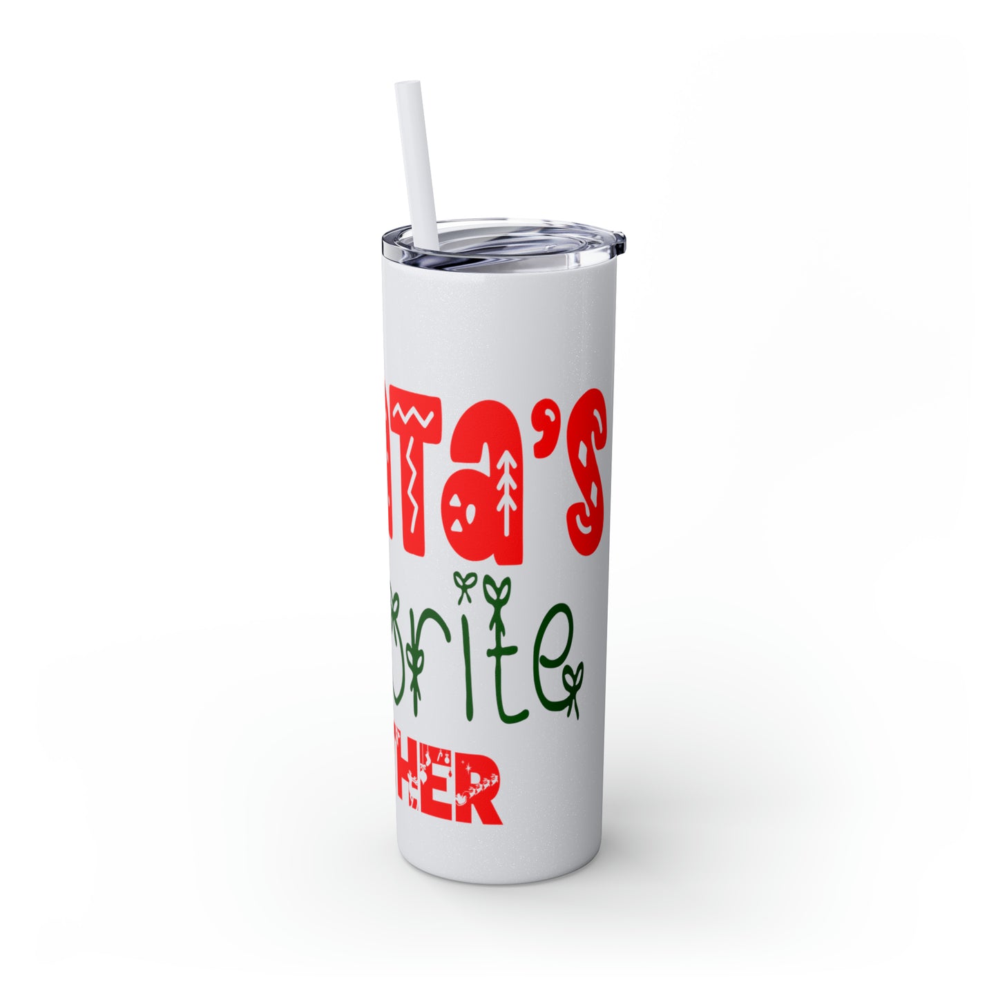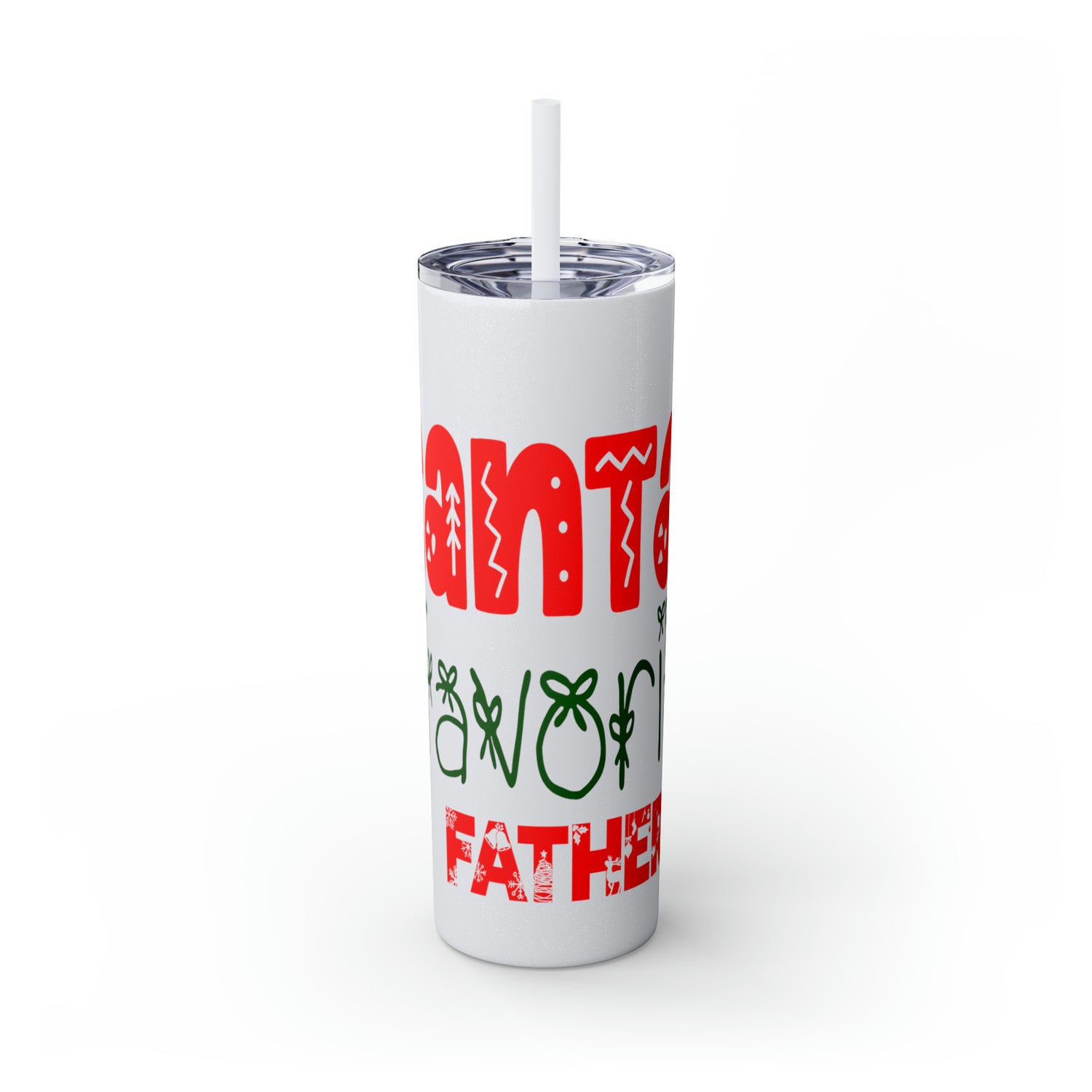 Santa's Favorite Father Skinny Tumbler with Straw, 20oz