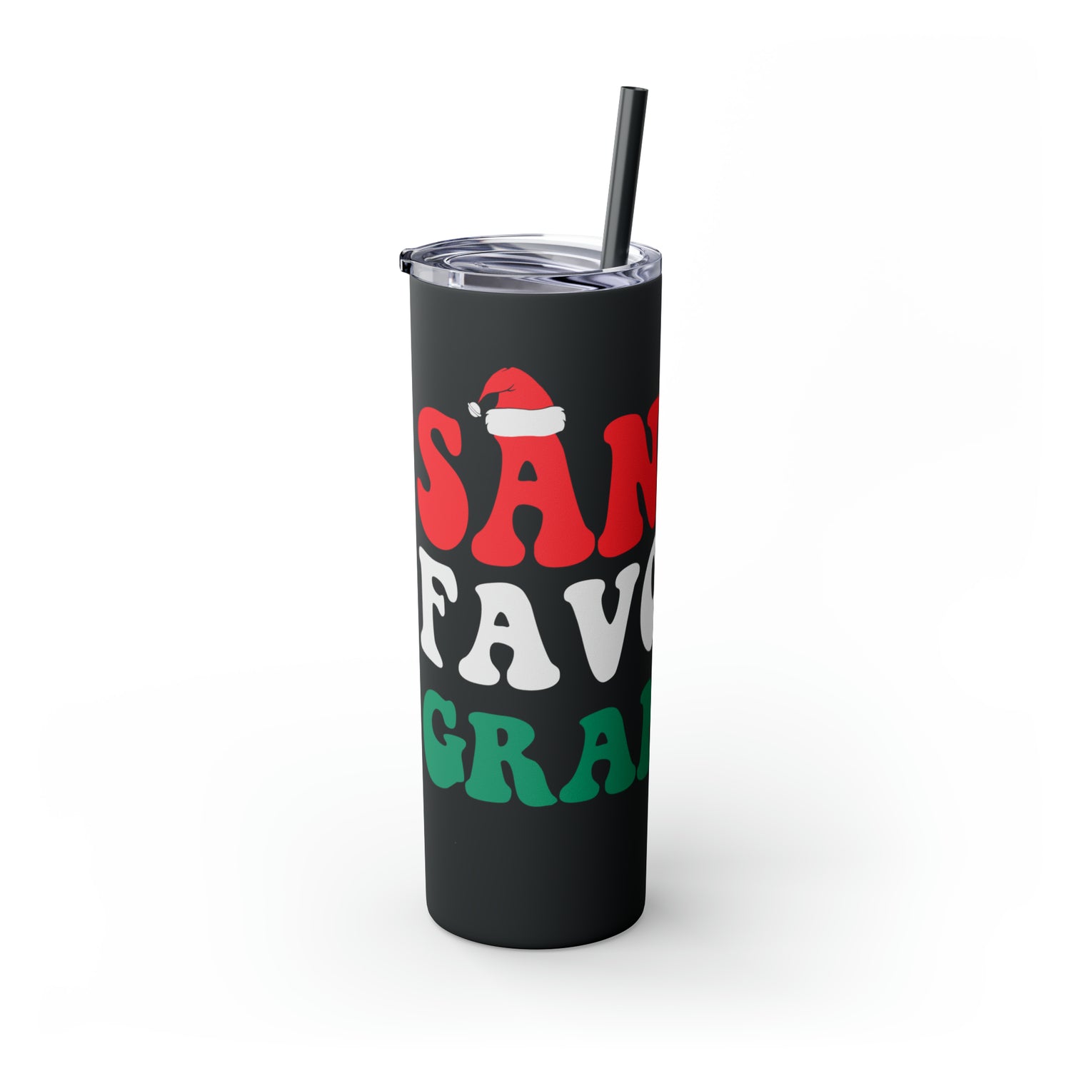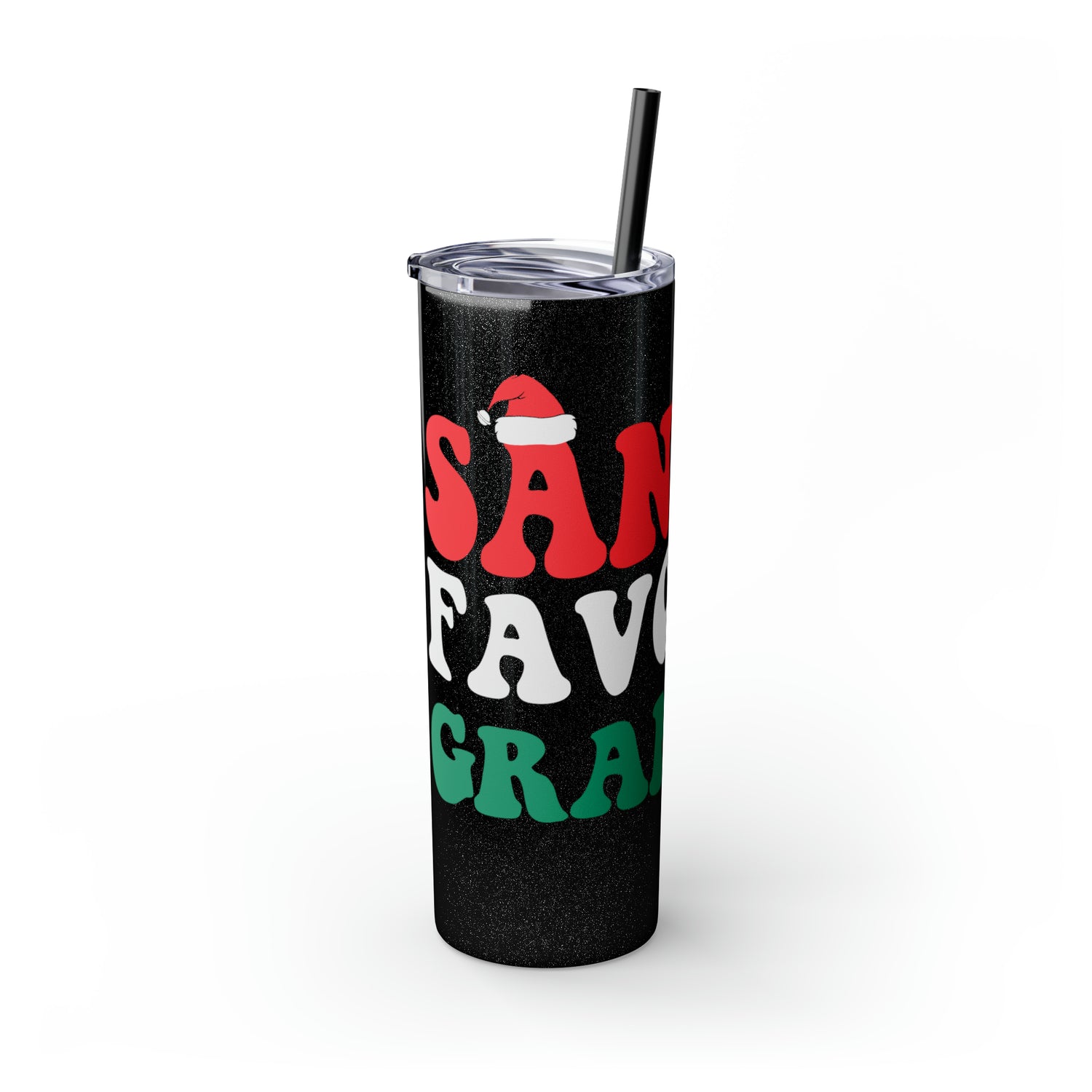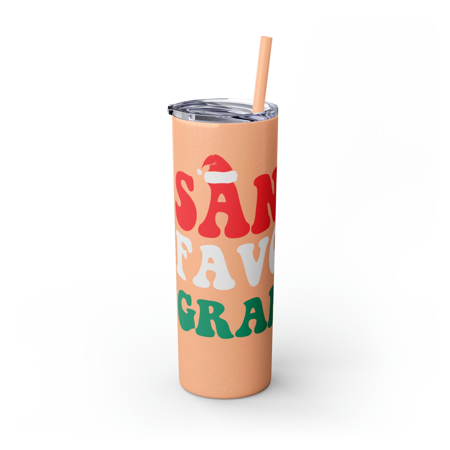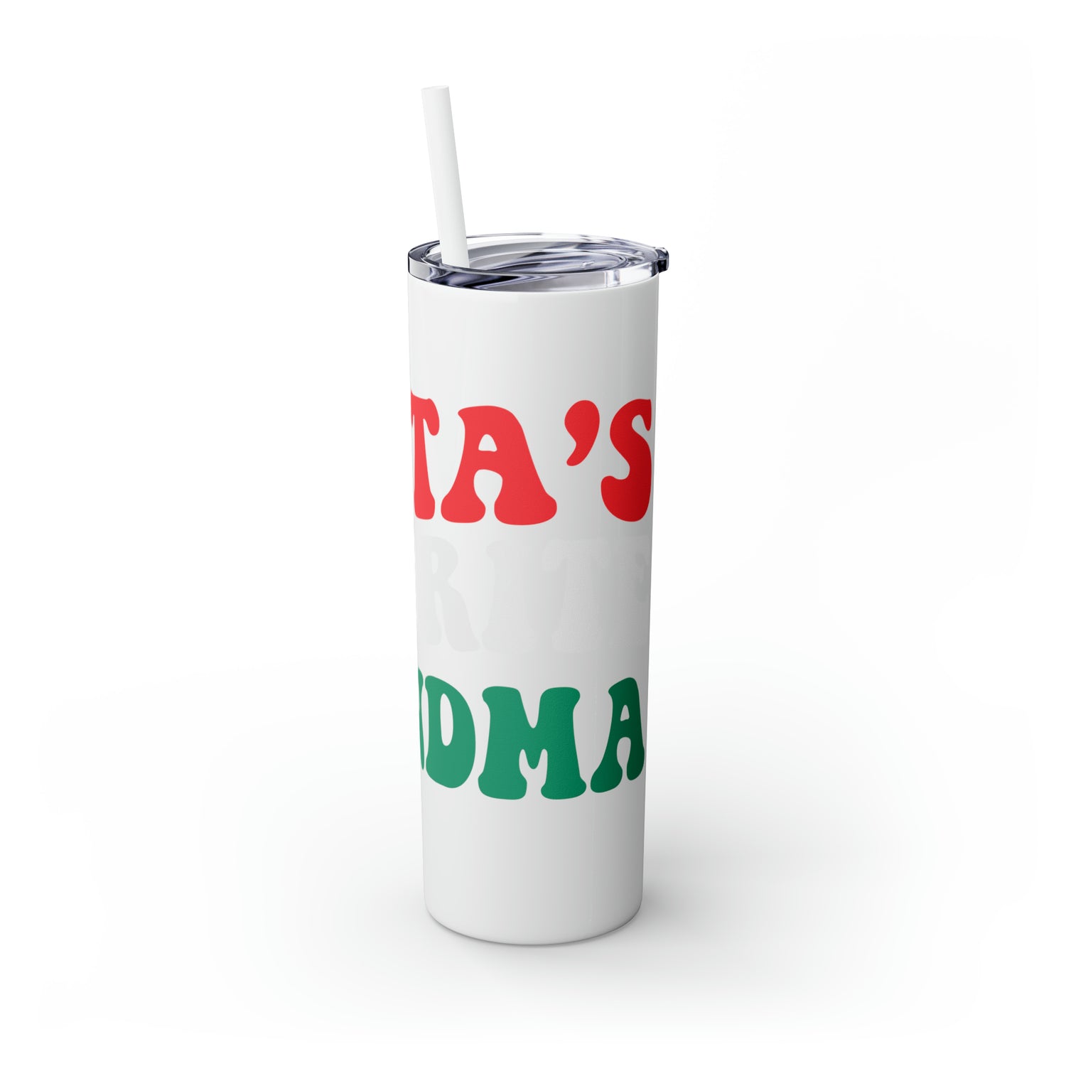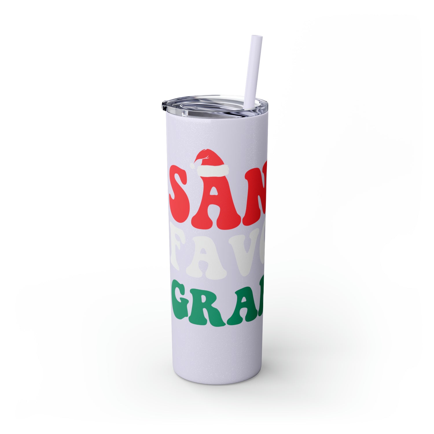 Santa's Favorite Grandma Skinny Tumbler with Straw, 20oz