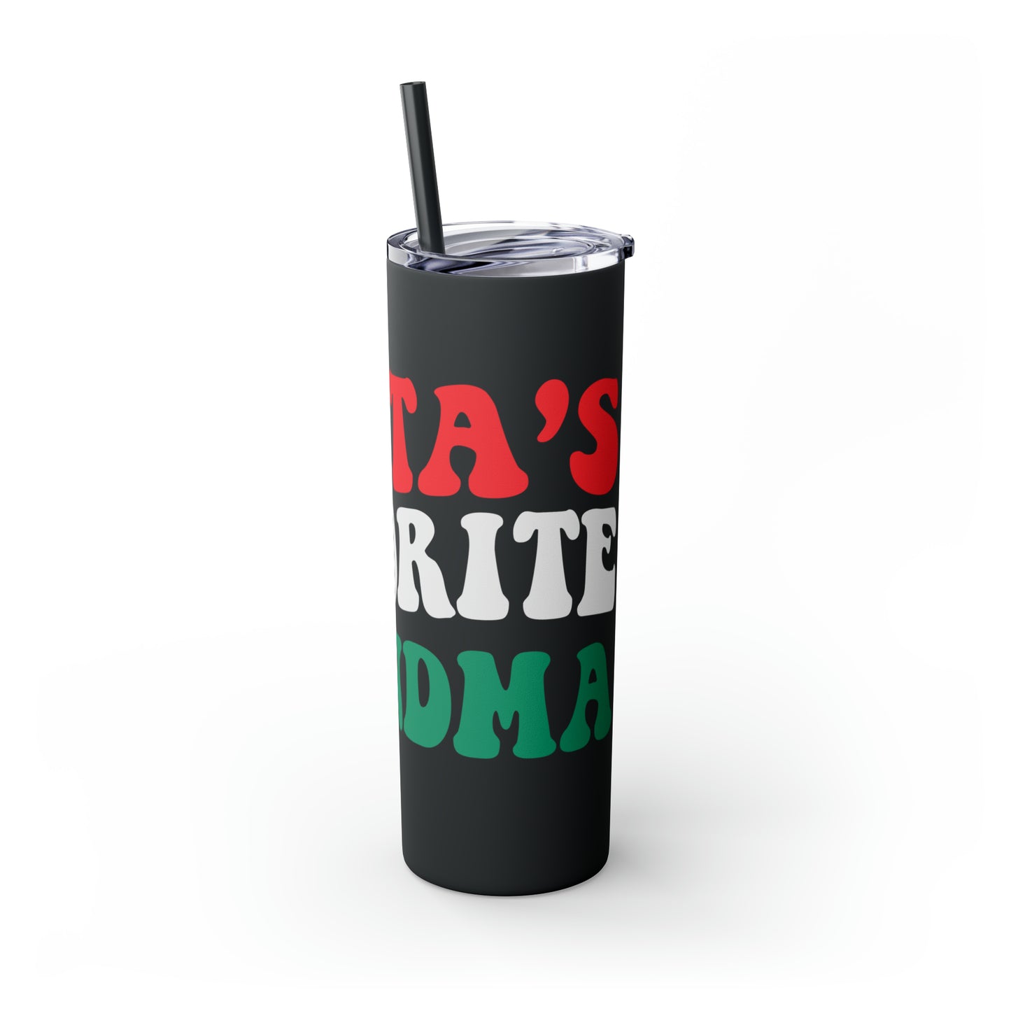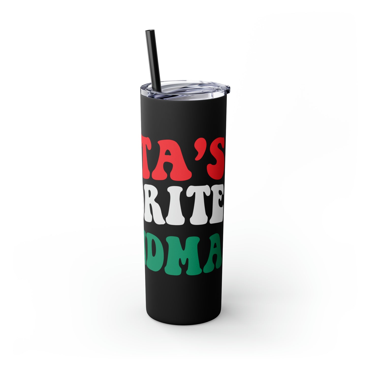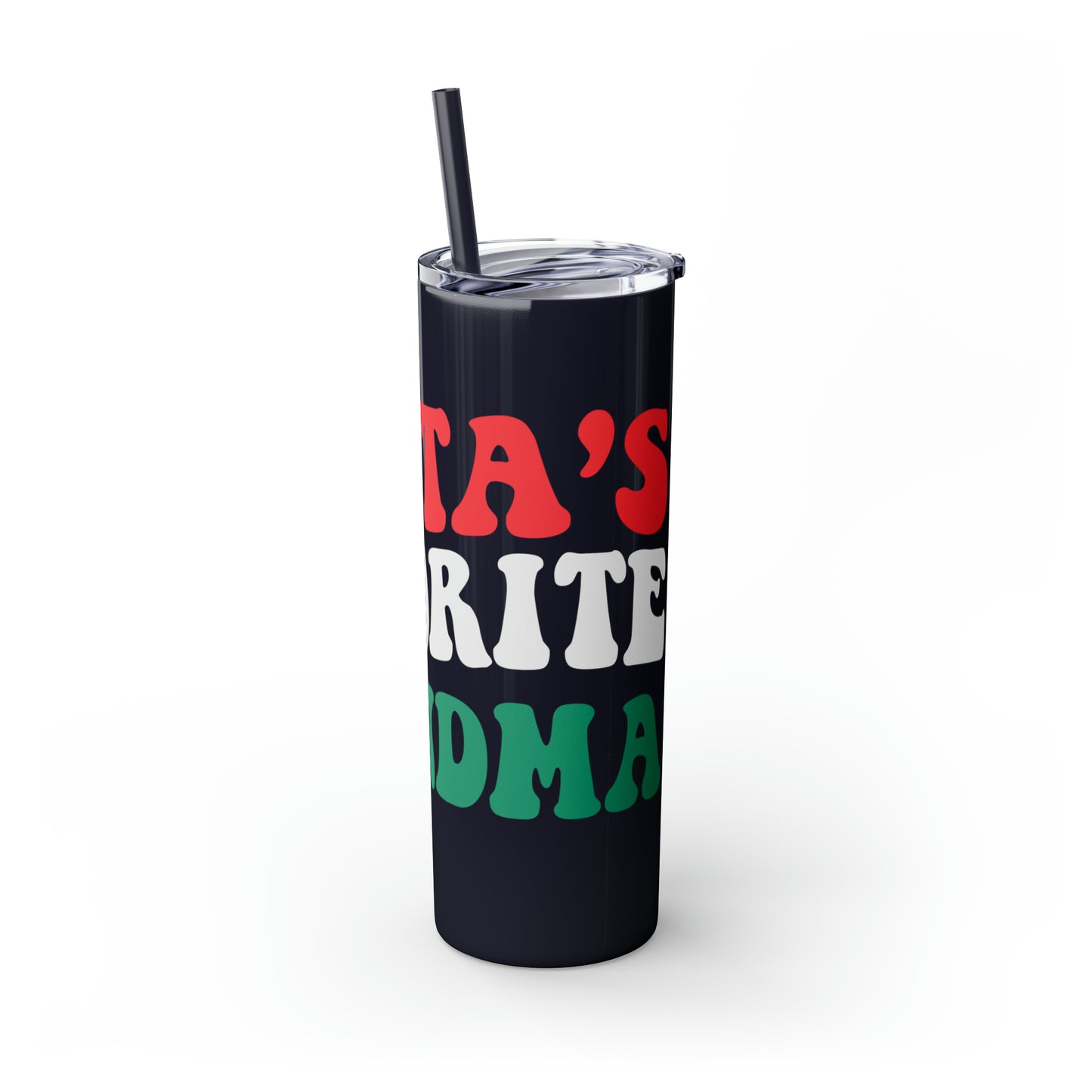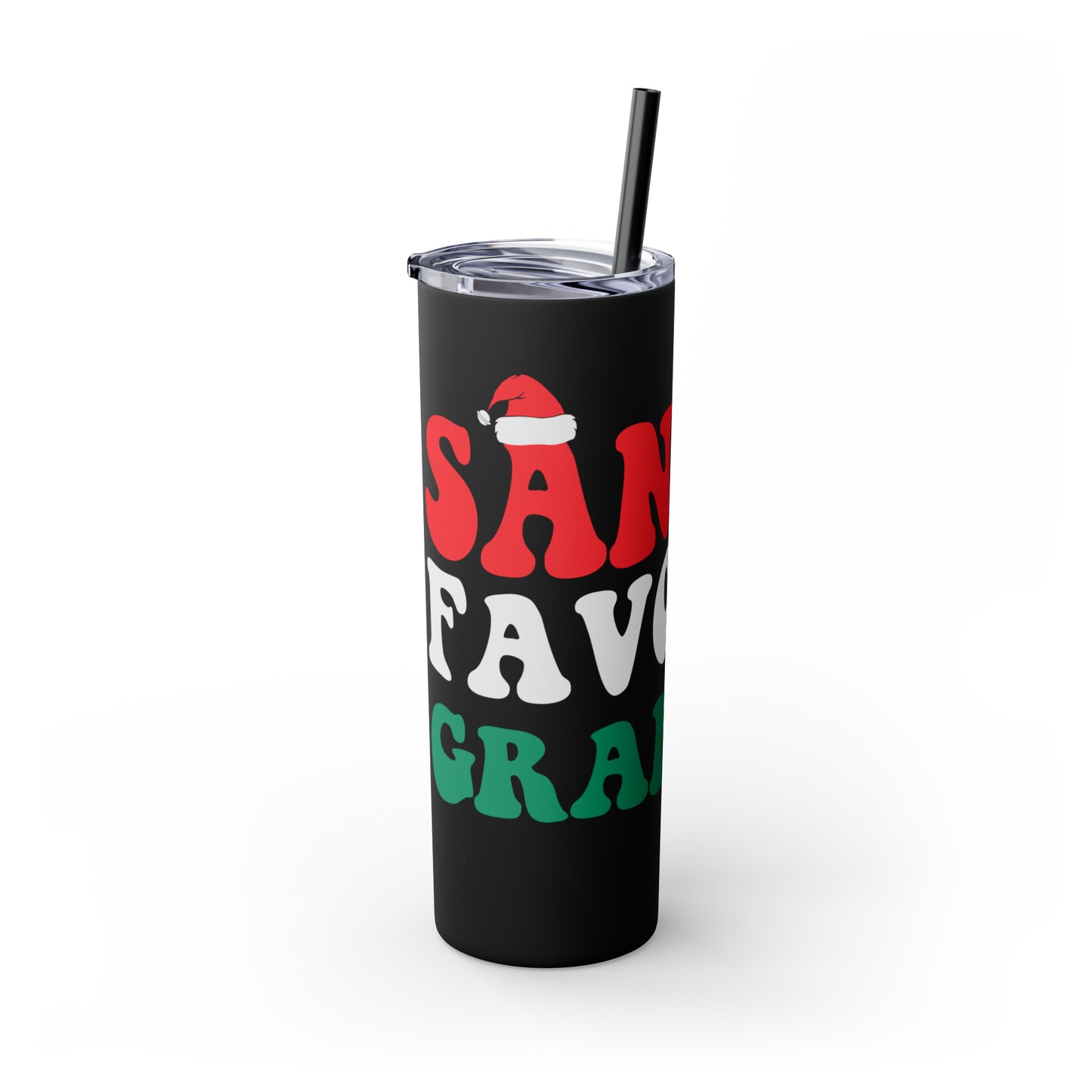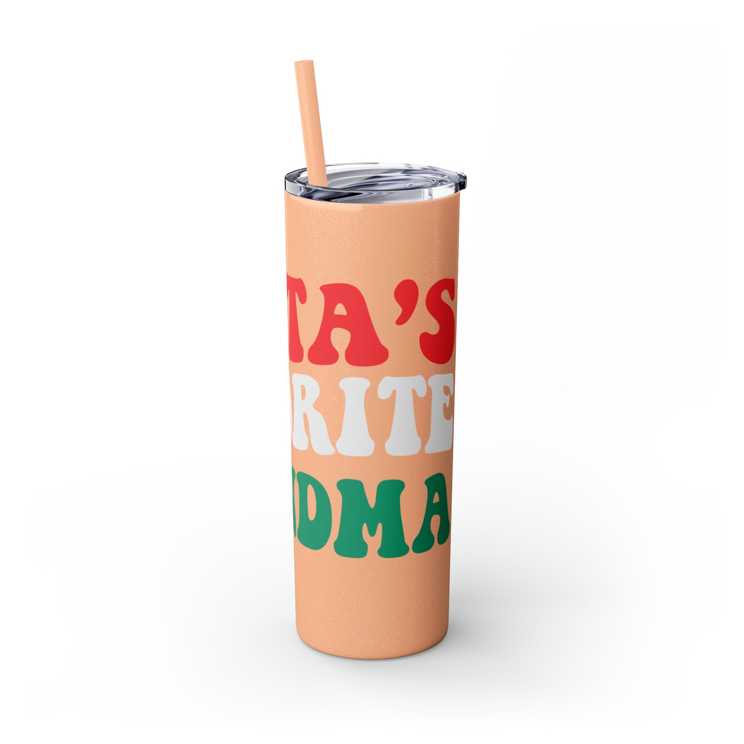 Santa's Favorite Grandma Skinny Tumbler with Straw, 20oz