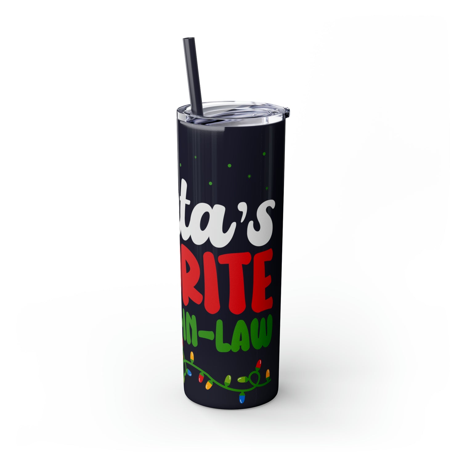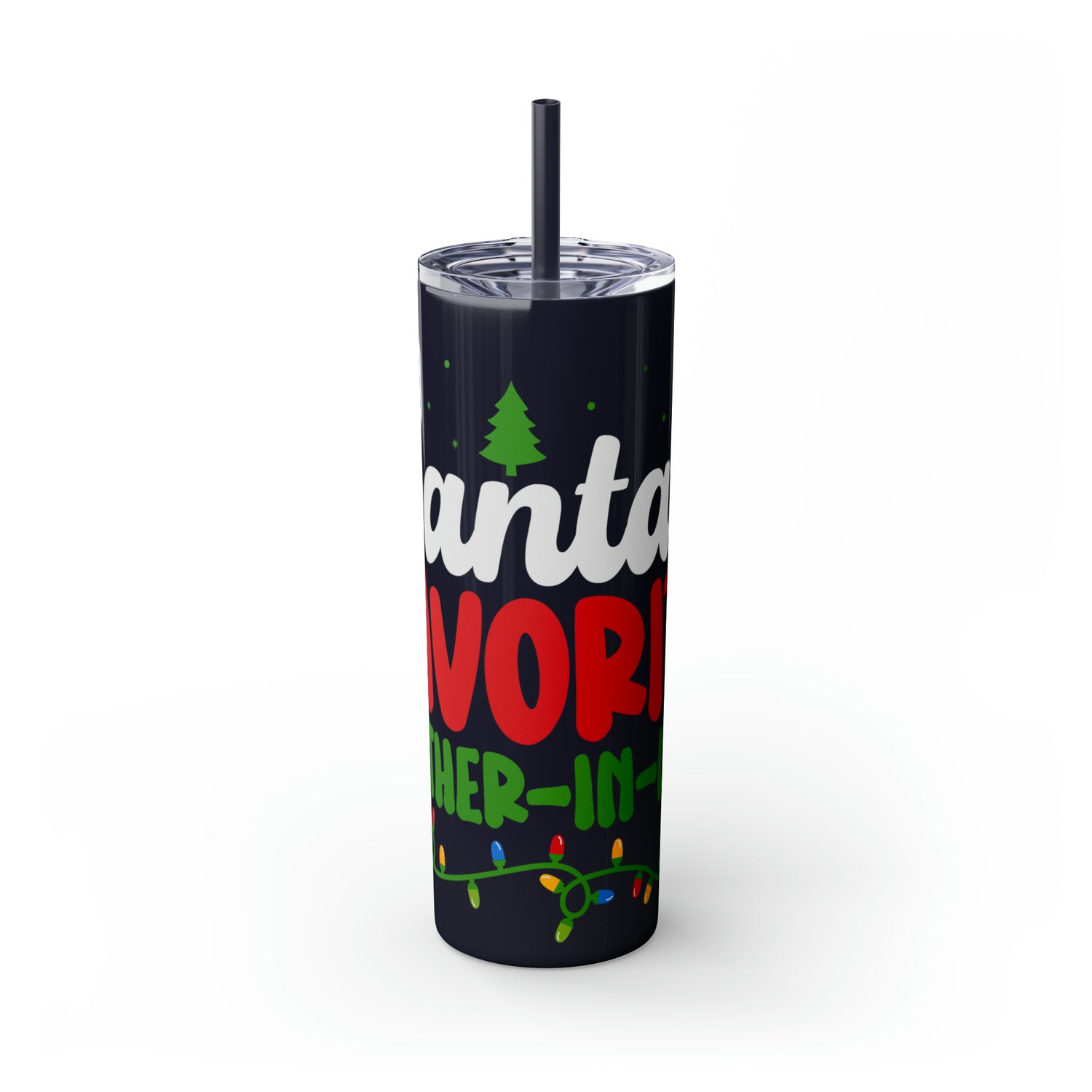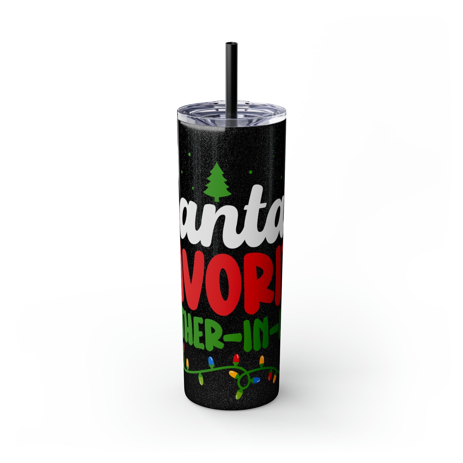 Santa's Favorite Mother-In-Law Skinny Tumbler with Straw, 20oz