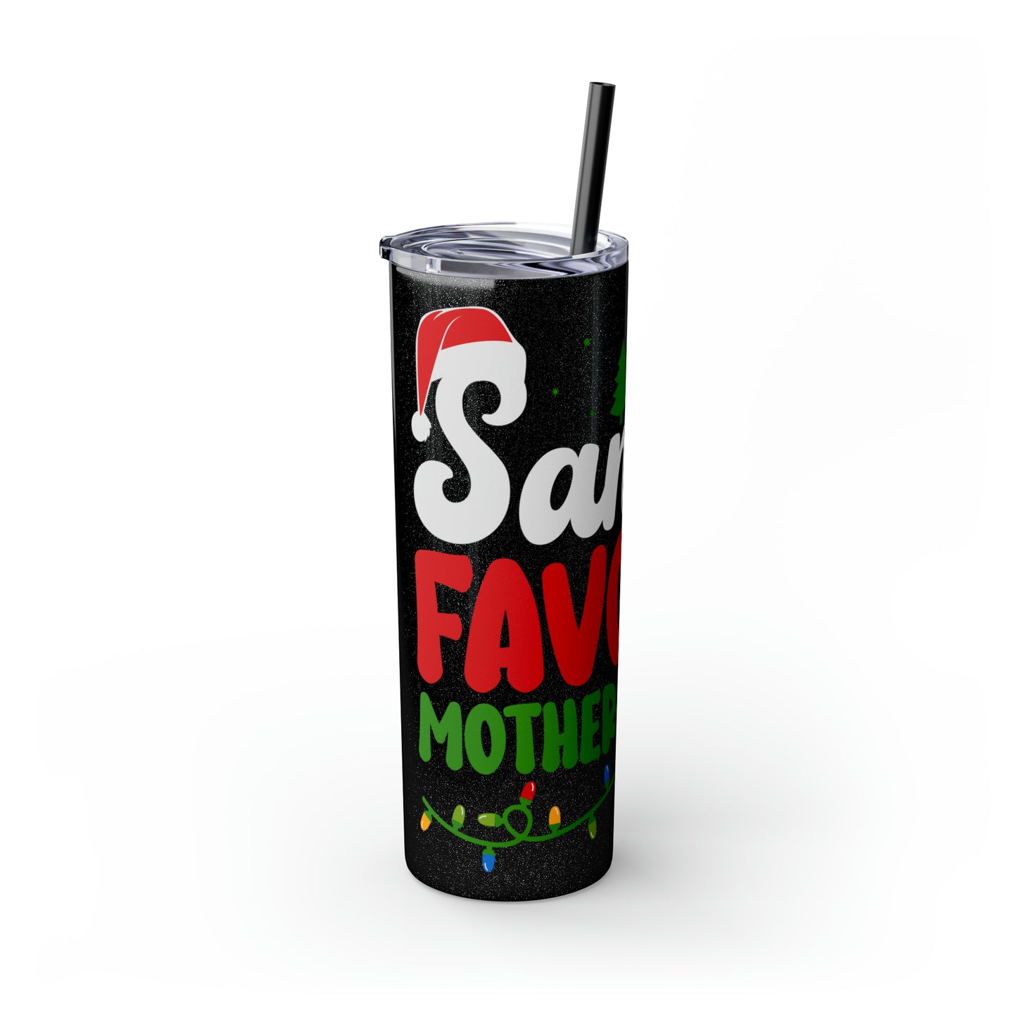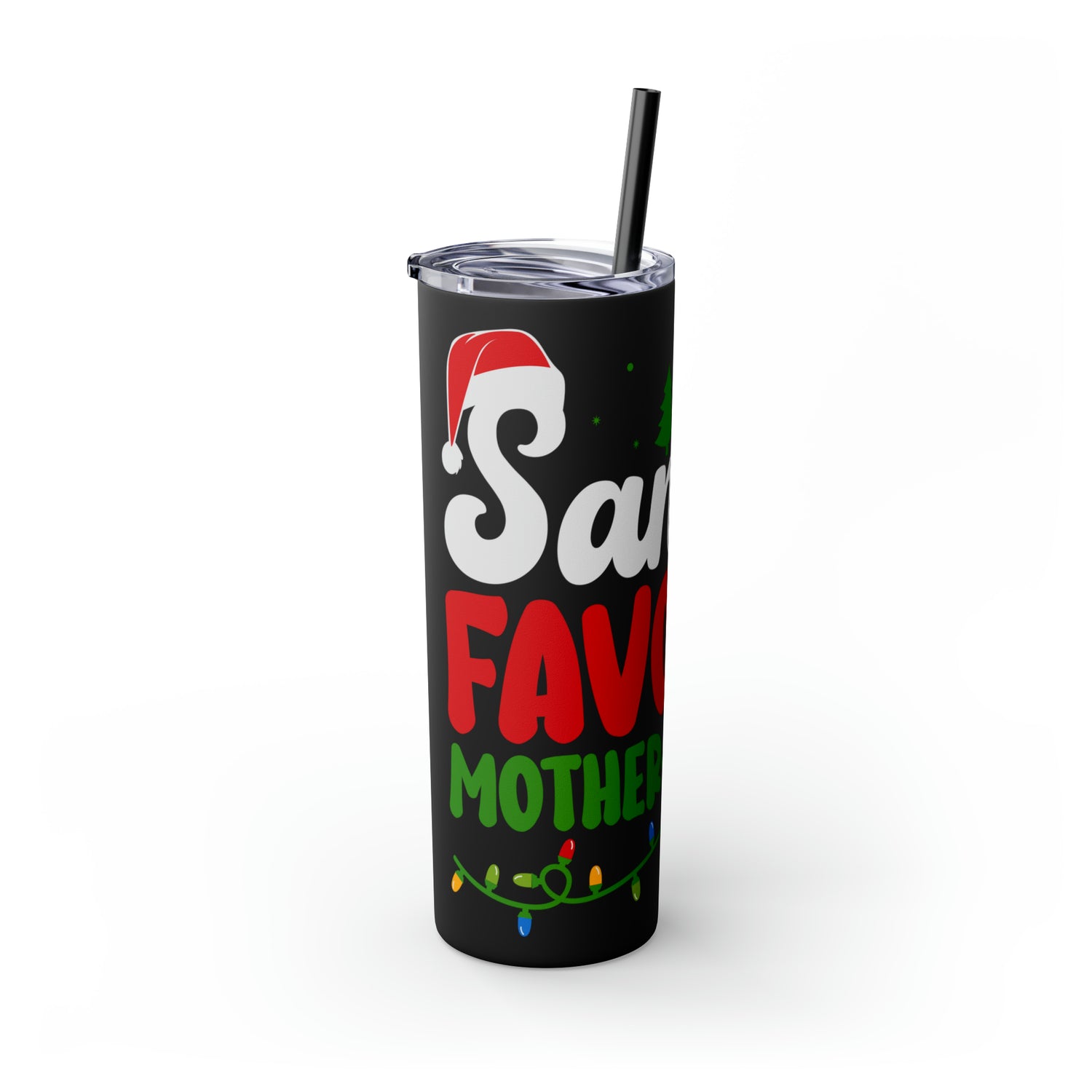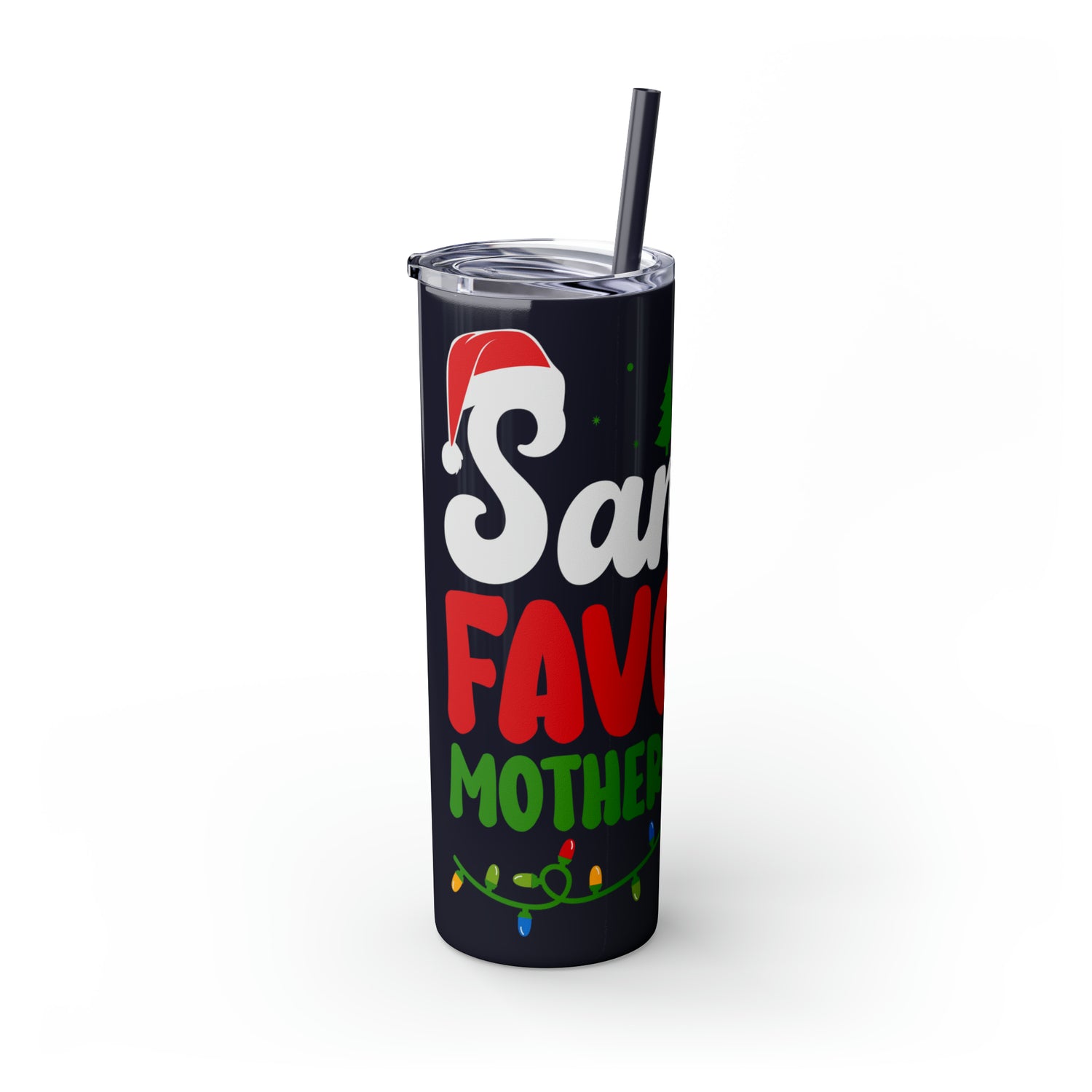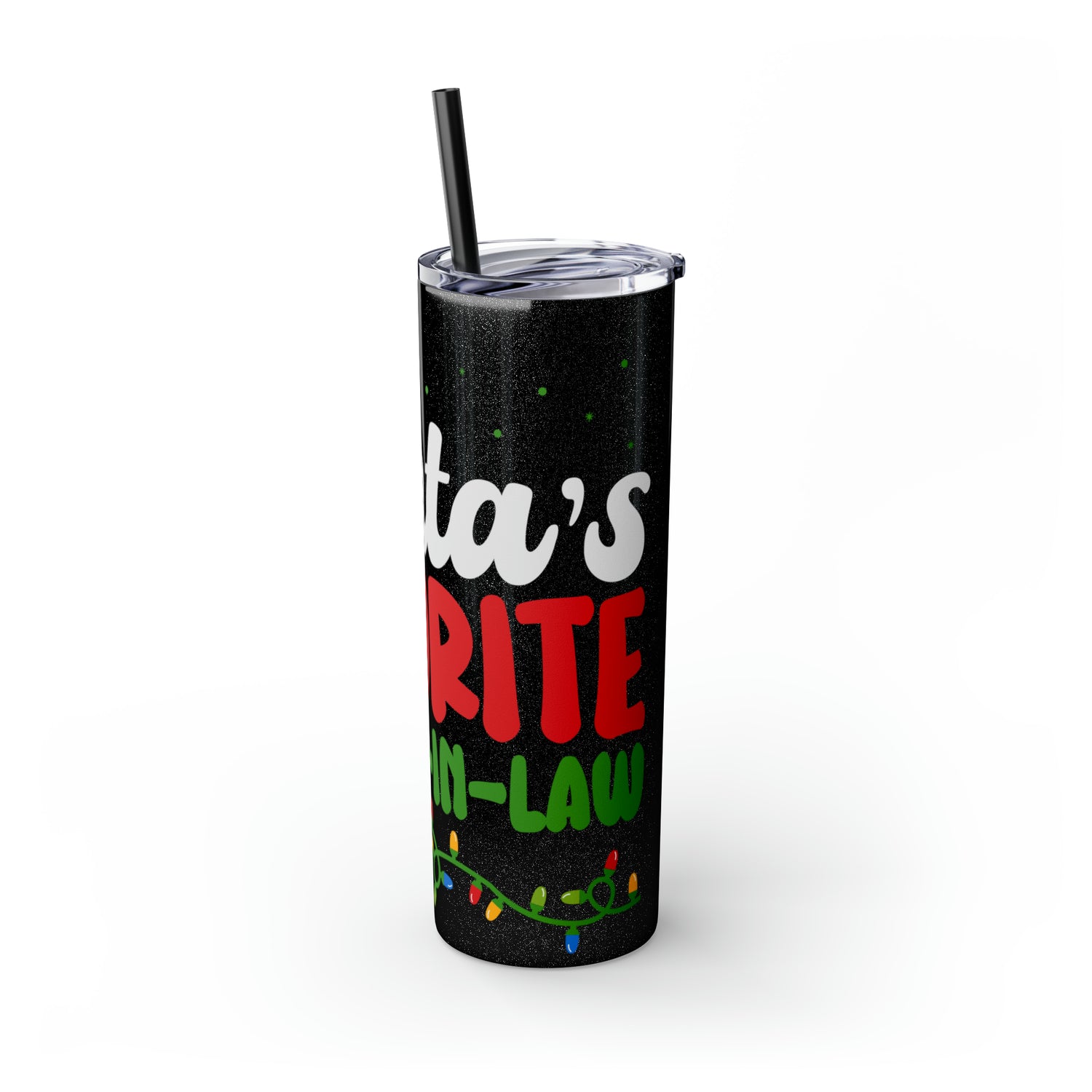 Santa's Favorite Mother-In-Law Skinny Tumbler with Straw, 20oz