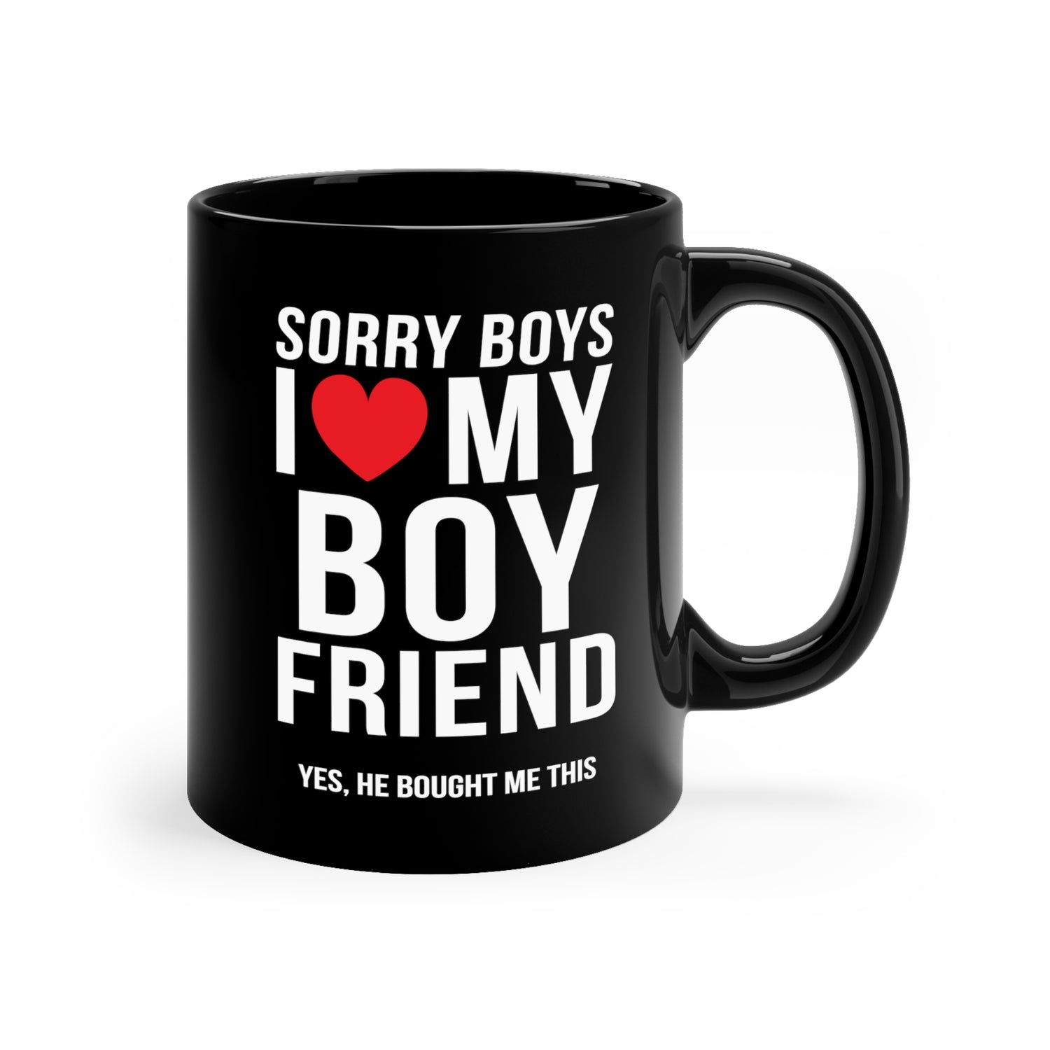 Sorry Boys I Love My Boyfriend Yes, He Bought Me This 11oz Black Mug