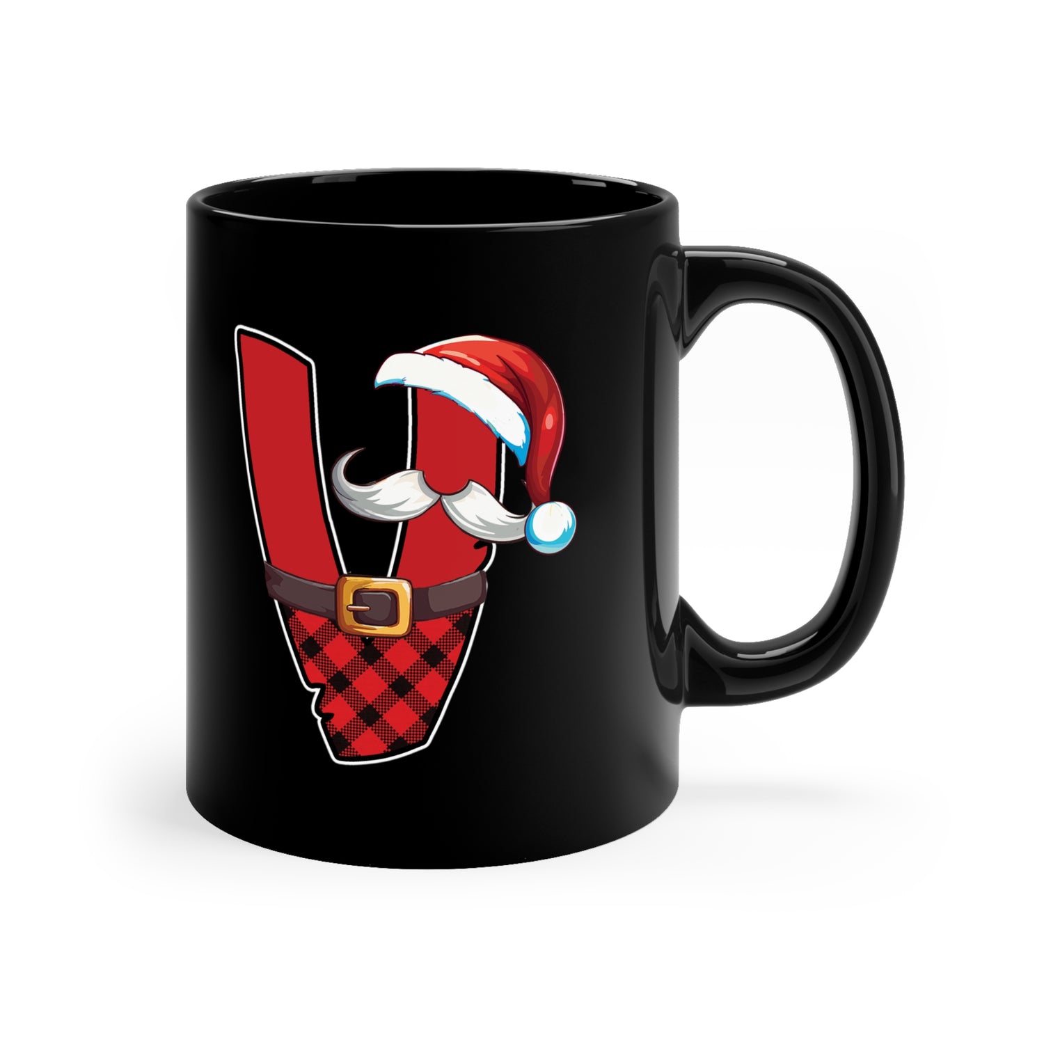V Santa Initial 11oz Black Mug