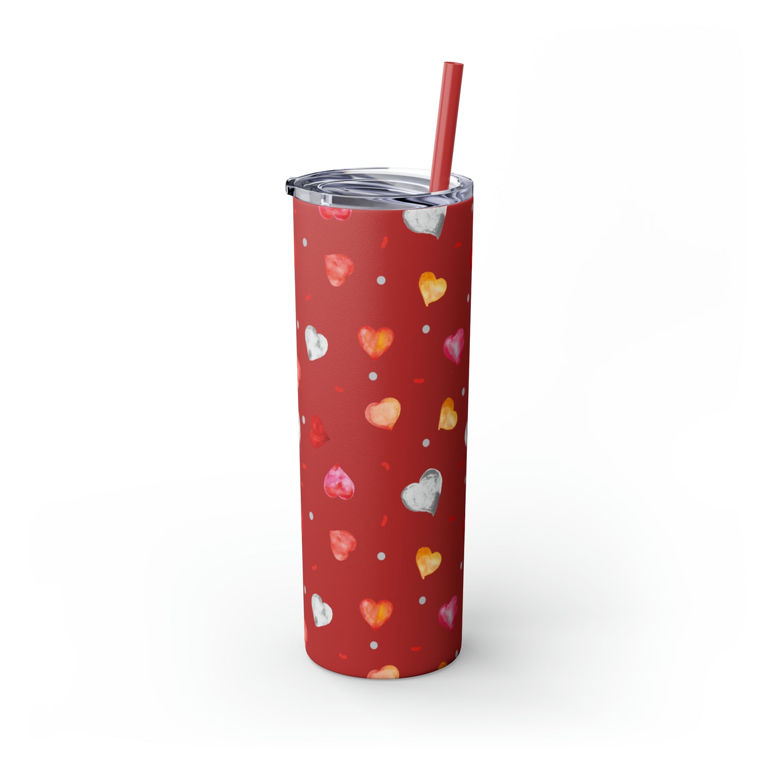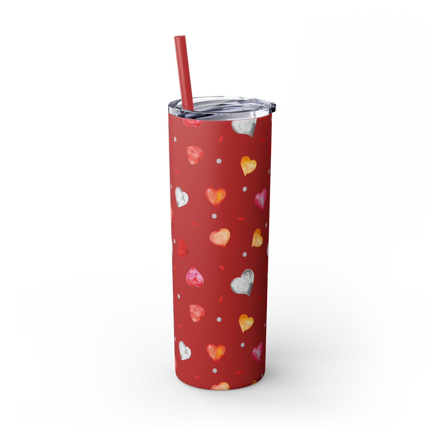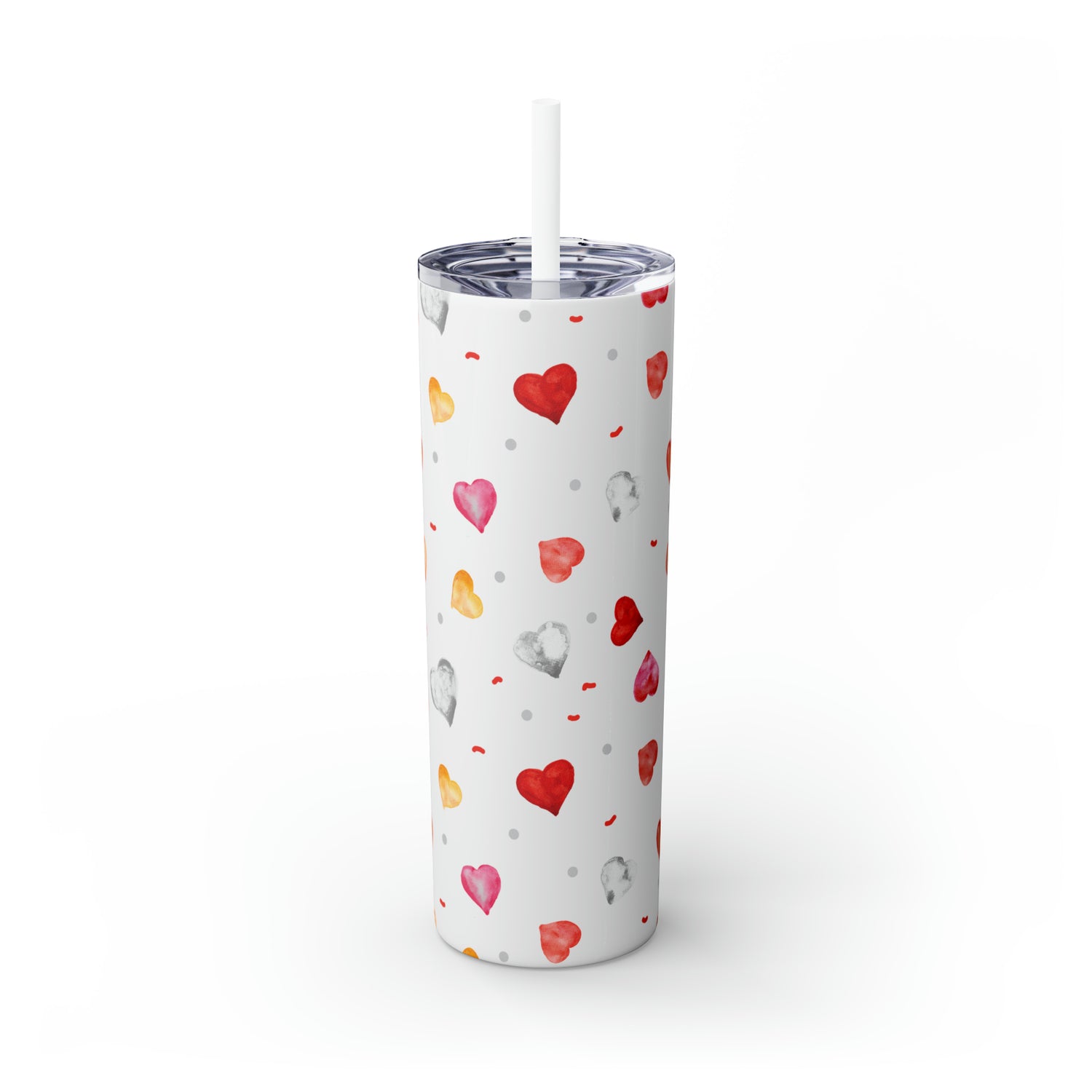Valentine's Hearts Skinny Tumbler with Straw, 20oz