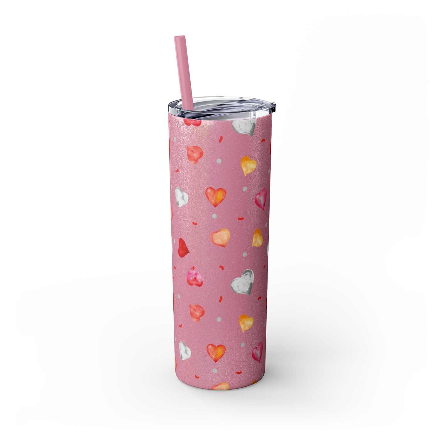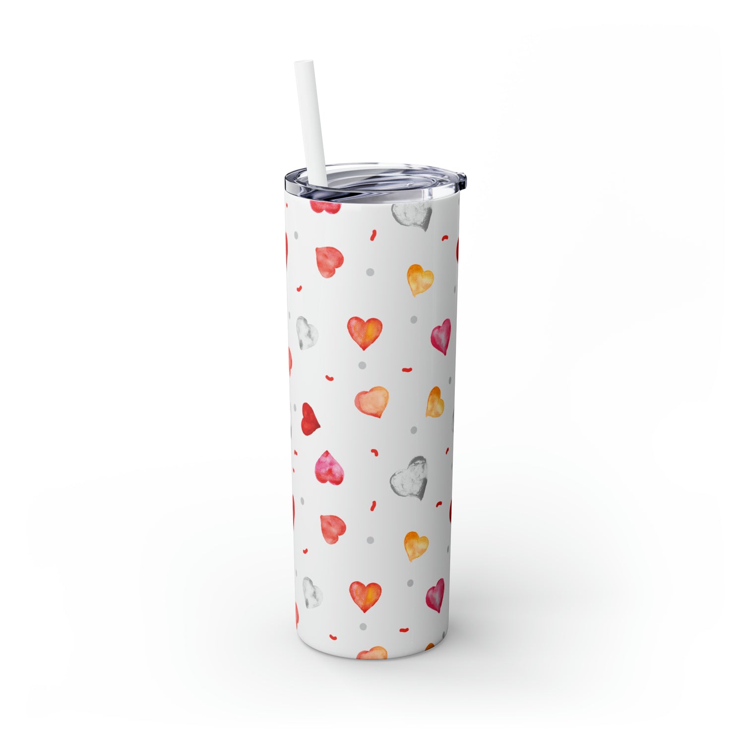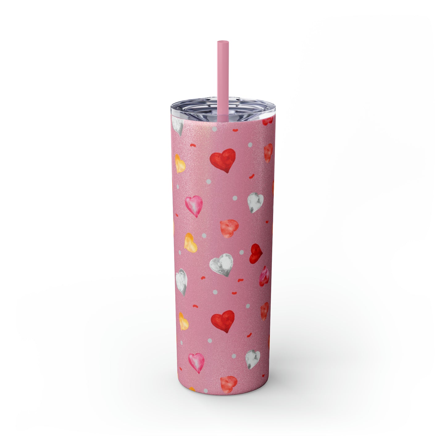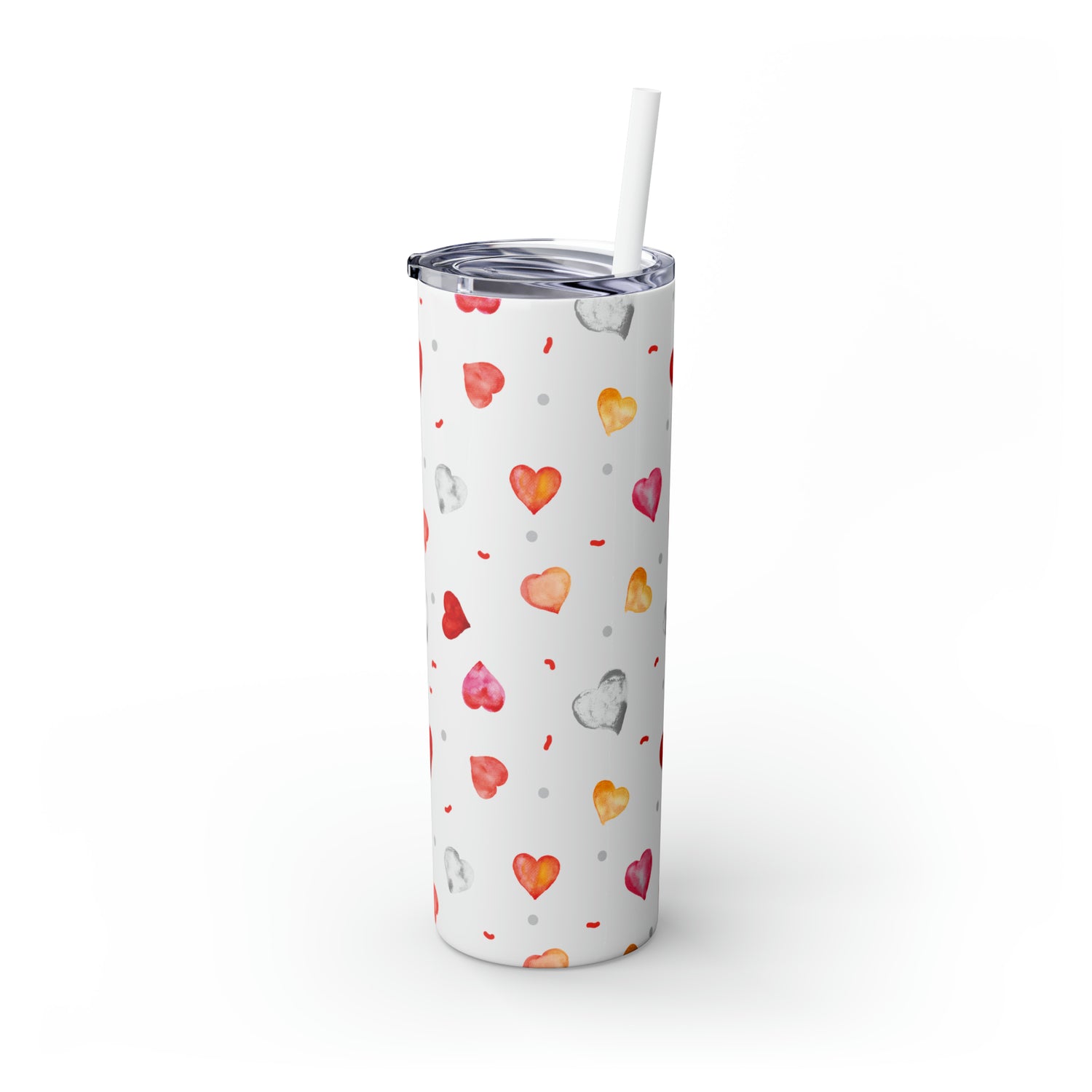 Valentine's Hearts Skinny Tumbler with Straw, 20oz