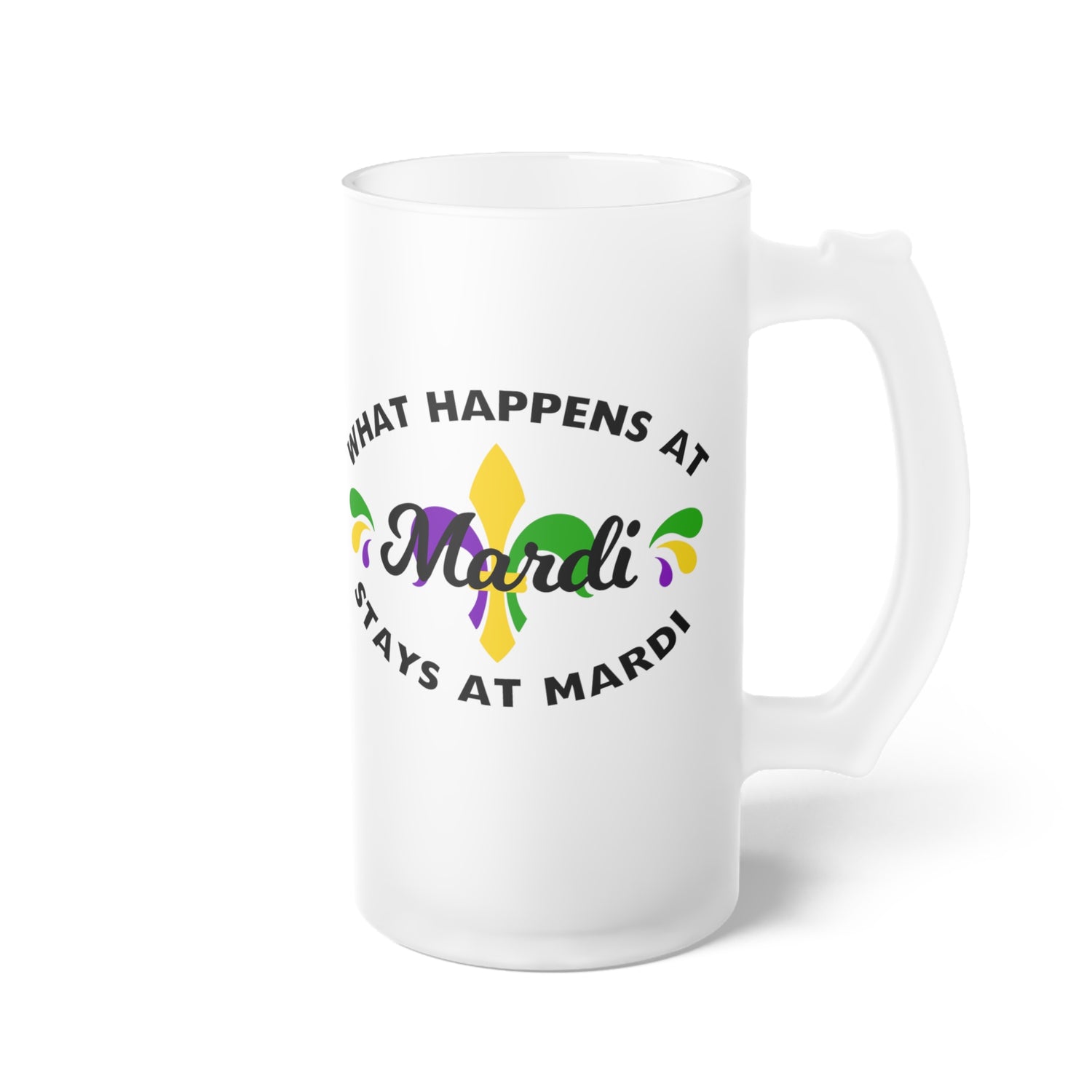 What Happens At Mardi Stays at Mardi Frosted Glass Beer Mug