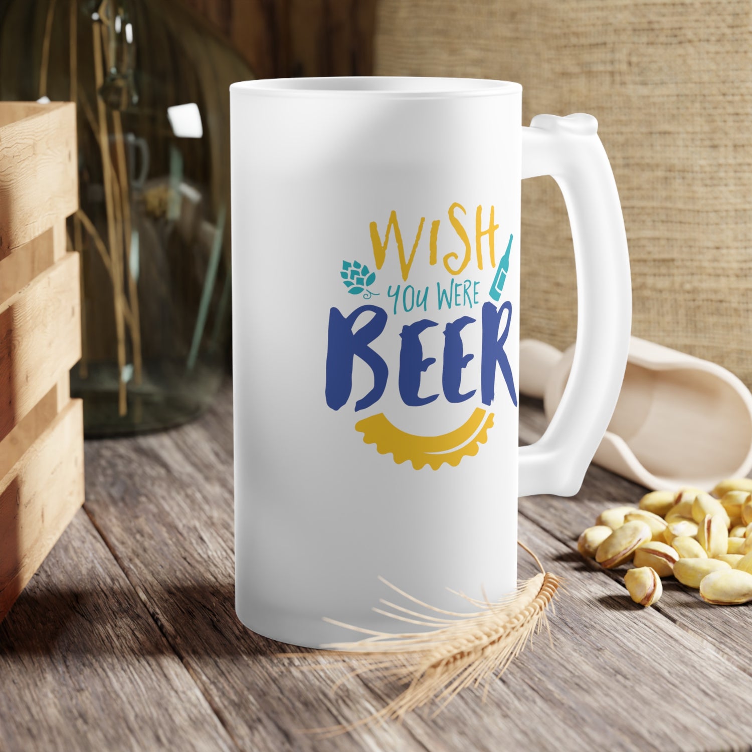 Wish You Were Beer Frosted Glass Beer Mug