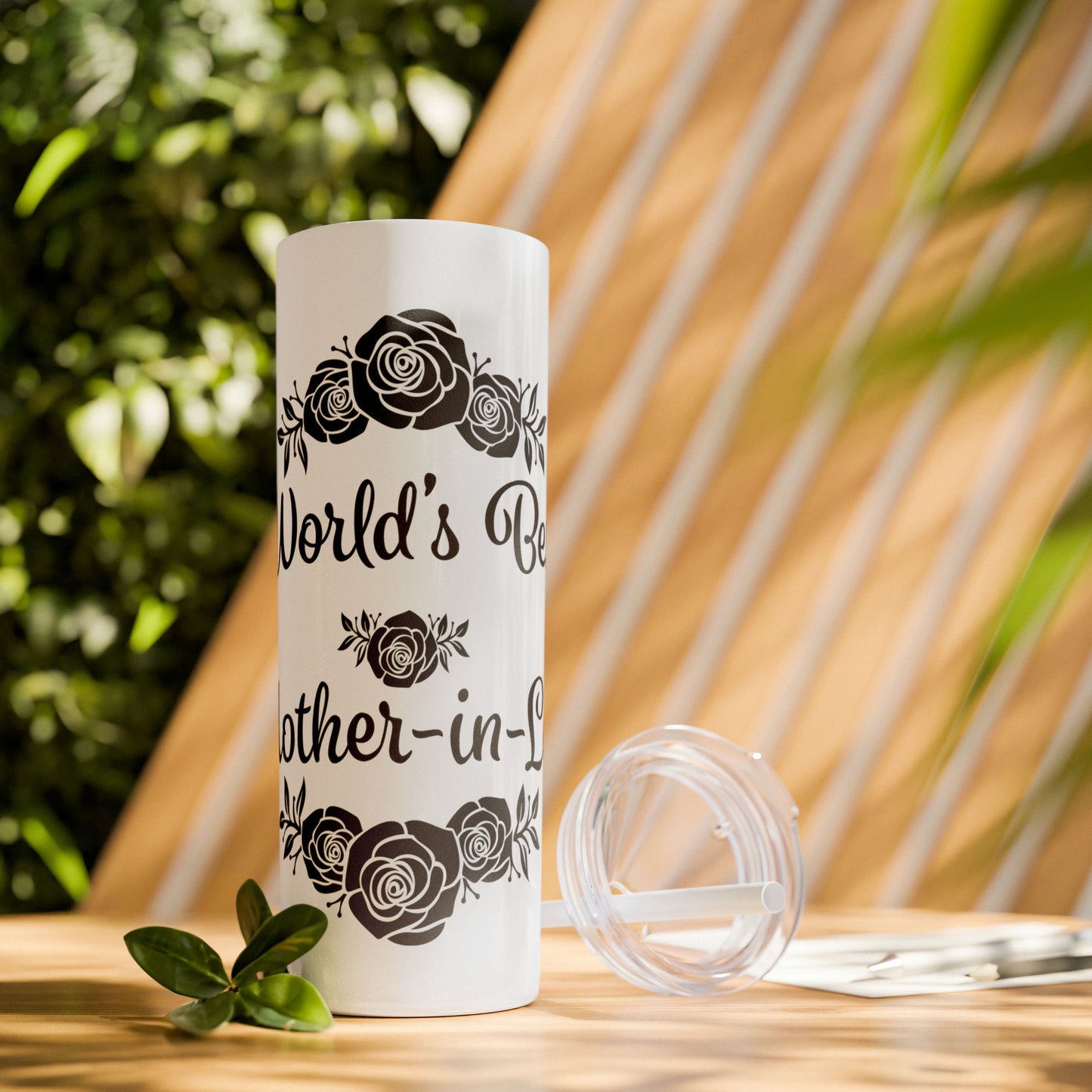 World's Best Mother-In-Law Skinny Tumbler with Straw, 20oz
